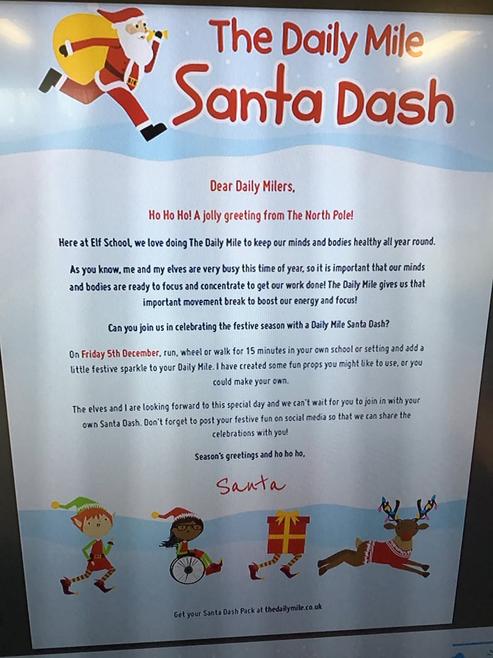On Friday, across school, the children all took part in the 'Daily Mile Santa Dash 2025'.