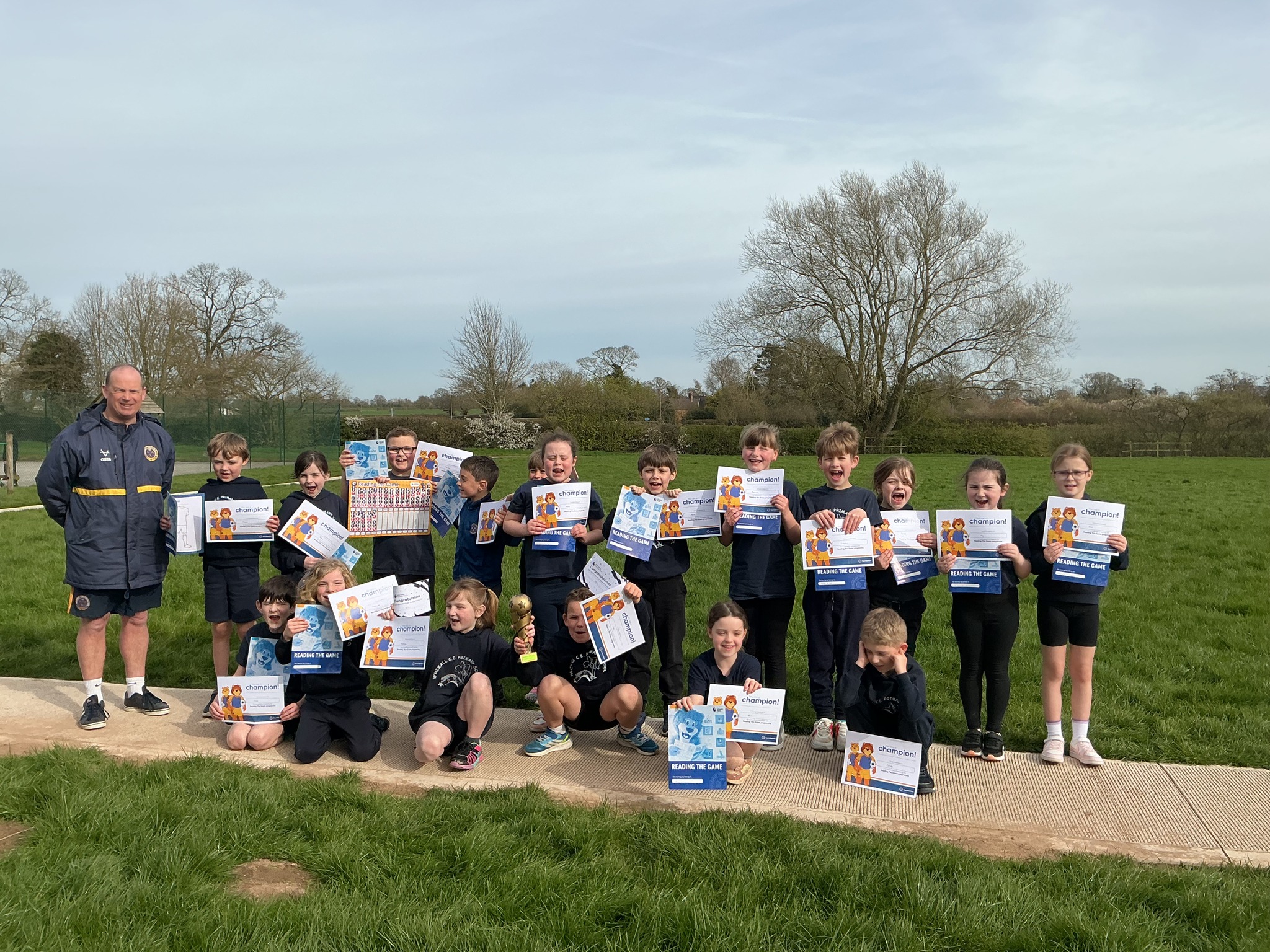 They all received certificates for their amazing efforts. A huge thank you to Coach Neil for coming in to encourage the children with their reading and writing, as well as their football skills!